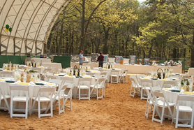 from the table and chairs to linens and plates and the food and beverages. The big tent ensured that the weather